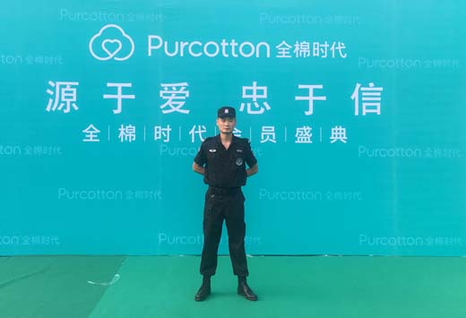 2017年8月19日我司派駐安保人員16人參加了深圳全棉時代“源于愛、忠于信”全棉時代會員盛典大會安全護(hù)衛(wèi)工作。