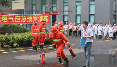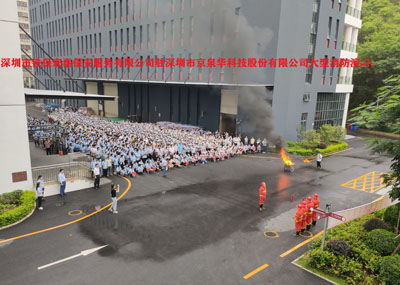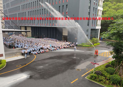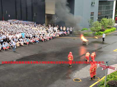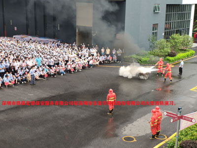 深圳市鐵保宏泰保安服務(wù)有限公司駐深圳市京泉華科技股份有限公司安保隊員進行大型消防演習。
