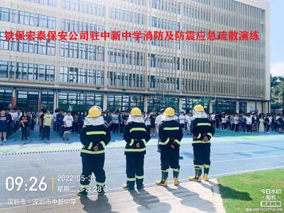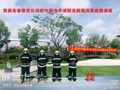 深圳市中新中學為創(chuàng)建平安校園,我司鐵保宏泰深圳保安服務公司協(xié)助中新中學進行消防及防震應急疏散演練。增強學生的安全防范意識,增強學生的安全知識,全面提高學生面對地震、火災等應急事件的處理能力,在學校發(fā)生緊急情況時,全體師生能安全、快速地進行疏散。通過防震、消防應急疏散演練,使全校師生掌握應急避震、避火的正確方法,熟悉地震或火災發(fā)生后緊急疏散的程序和線路,確保在地震、火災來臨時 ,我校防震、消防應急工作能快速、高效、有序地進行,從而最大限度地保護全校師生的生命安全,特別是減少不必要的非震、非火傷害。同時通過演練活動培養(yǎng)學生聽從指揮、團結互助的品德,提高突發(fā)公共事件下的應急反應能力和自救互救能力。