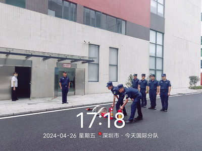 我司鐵保宏泰深圳保安公司安保今日國(guó)際分隊(duì)舉行消防演練。