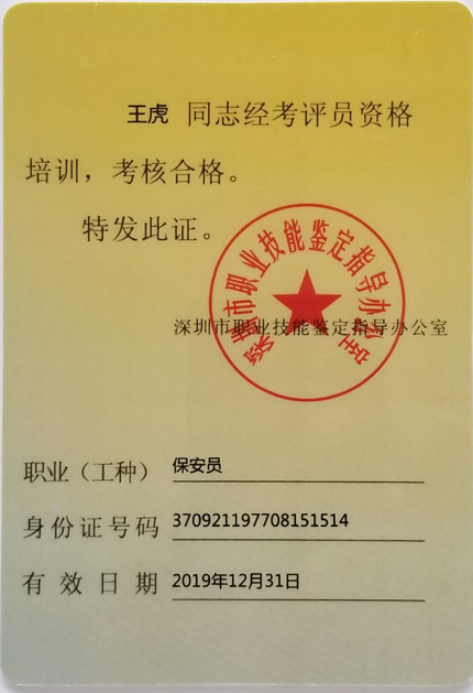 熱烈慶祝我司總經(jīng)理王虎取得深圳職業(yè)技能鑒定考評員資格。