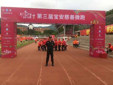 4月15日,與愛同行——第二屆寶安慈善微跑活動在寶安區(qū)鳳凰山開跑。活動匯集了約3000名穿橙色T恤衫的跑友,超過去年的1500名,現(xiàn)場刮起了一陣橙色風(fēng)暴。考慮到參與者身體素質(zhì)的不同,本次微跑活動分為5公里與10公里兩種距離的折返跑,跑友們可根據(jù)實(shí)際情況選擇。微跑沿途設(shè)有多個飲用水補(bǔ)給站免費(fèi)為跑友們提供茶水,還有醫(yī)務(wù)人員陪跑,隨時為跑友提供醫(yī)療幫助,更有義工一路為跑友指引、加油。我司鐵保宏泰保安公司為本次活動提供了安保護(hù)衛(wèi)活動。